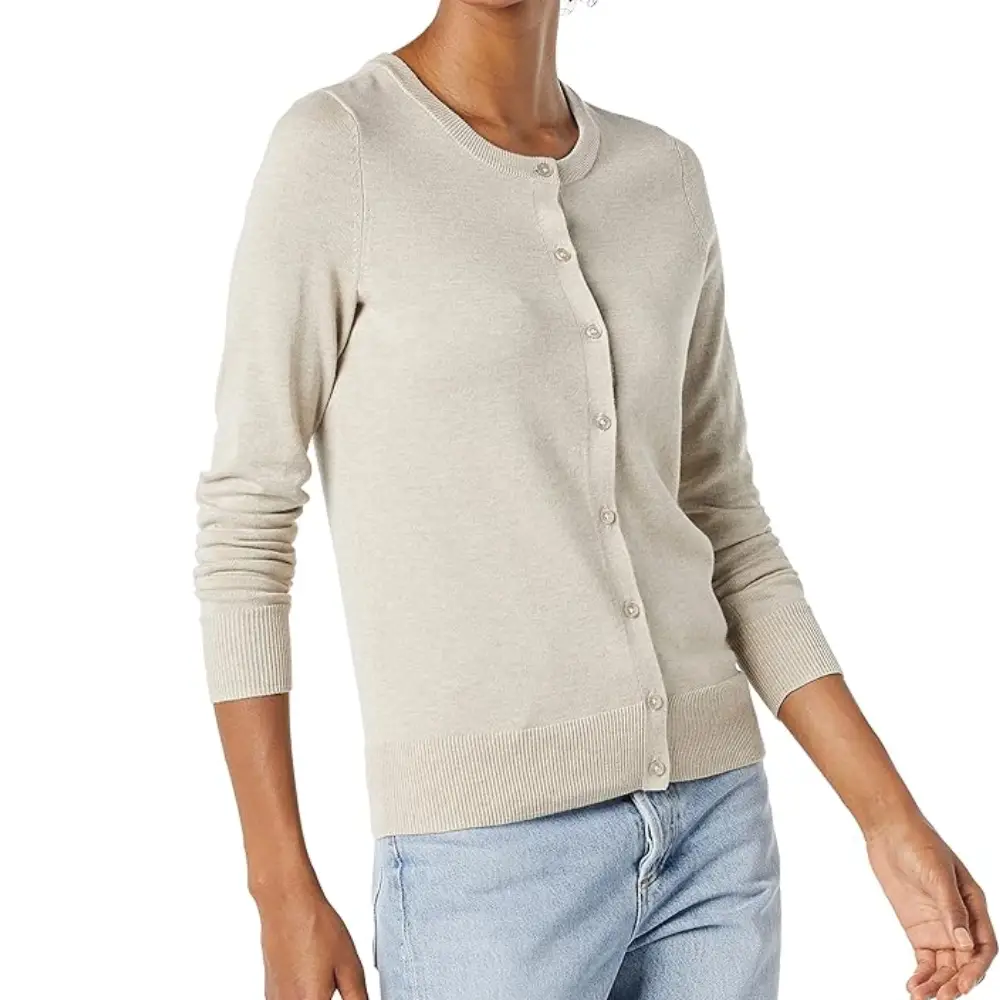 Gilet Col Rond Boutonné Beige Chiné