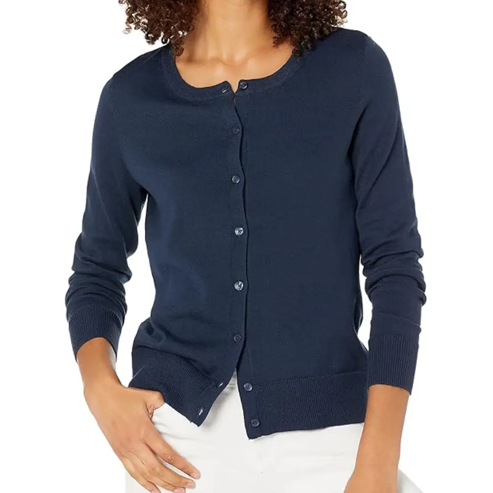 Gilet Col Rond Boutonné Bleu Marine